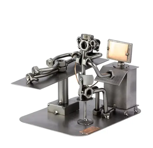 Unsere Schraubenmännchen und Metallobjekte werden in original Steelman-Qualität, aufwendig und in liebevoller Handarbeit, hergestellt. Durch diese Art der Verarbeitung ist jedes Einzelne ein Unikat, welches höchsten Qualitätsansprüchen genügt. Diese kleinen Kunstwerke werden mit hohem handwerklichen Geschick und viel Liebe zum Detail aus Schrauben, Muttern, Metall und Kupfer, in einem intensiven und aufwendigen Herstellungsprozess gefertigt. Sie bestechen dabei nicht nur durch ihre außergewöhnliche Kreativität, sondern auch durch einzigartige Detailgenauigkeit.