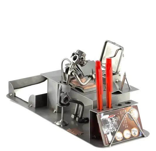 Unsere Schraubenmännchen und Metallobjekte werden in original Steelman-Qualität, aufwendig und in liebevoller Handarbeit, hergestellt. Durch diese Art der Verarbeitung ist jedes Einzelne ein Unikat, welches höchsten Qualitätsansprüchen genügt. Diese kleinen Kunstwerke werden mit hohem handwerklichen Geschick und viel Liebe zum Detail aus Schrauben, Muttern, Metall und Kupfer, in einem intensiven und aufwendigen Herstellungsprozess gefertigt. Sie bestechen dabei nicht nur durch ihre außergewöhnliche Kreativität, sondern auch durch einzigartige Detailgenauigkeit.